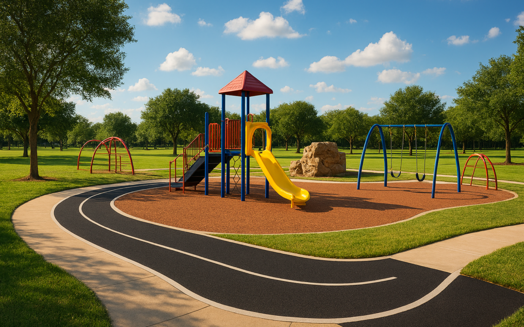 El parque contará con una pista de carreras de 400 pies con superficie de caucho, diseñada para reducir el calor de Texas y minimizar riesgos de lesiones. Además, los pequeños podrán disfrutar de zonas de escalada, columpios y amplias áreas verdes para jugar y explorar.